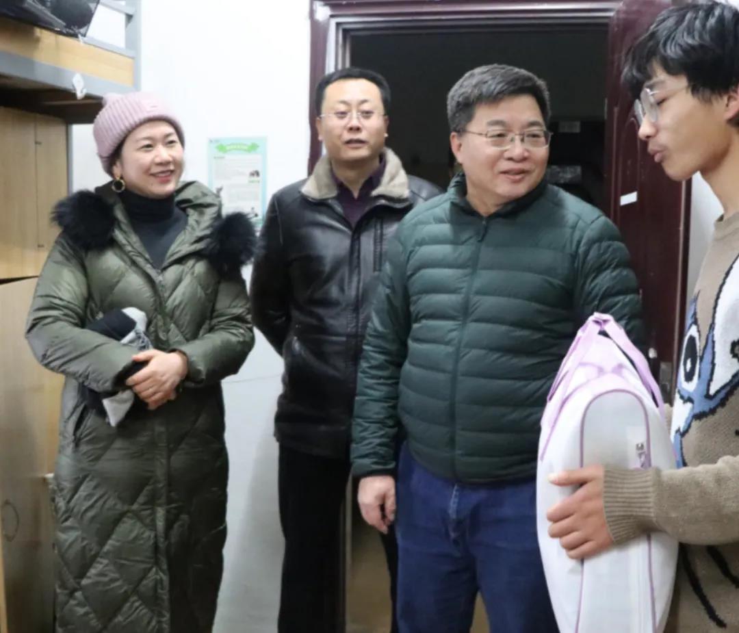 12月16日下午,系主任王黎明,副主任武斌,党总支副书记吴京京一行三人走访学生宿舍,为20级新生送去冬日温暖。