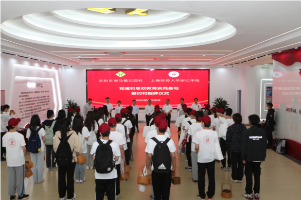5月28日,党建和思政教育实践基地签约和授牌仪式在东阳市南马镇花园党群服务中心举行。花园村党委副书记郭进武,党委委员、组织部部长张正亮代表双方致辞并签约。系师生代表以及2022年浙中调查专家组成员等参加并共同见证。