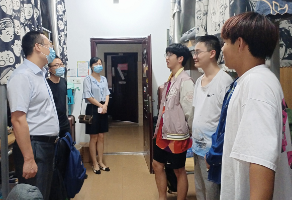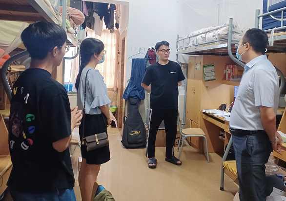 9月3日下午,系党总支副书记、副主任武斌,系相关负责人、教工党支部书记罗平,系综合办主任蔡美姿一行前往学生宿舍,走访慰问返校学生。