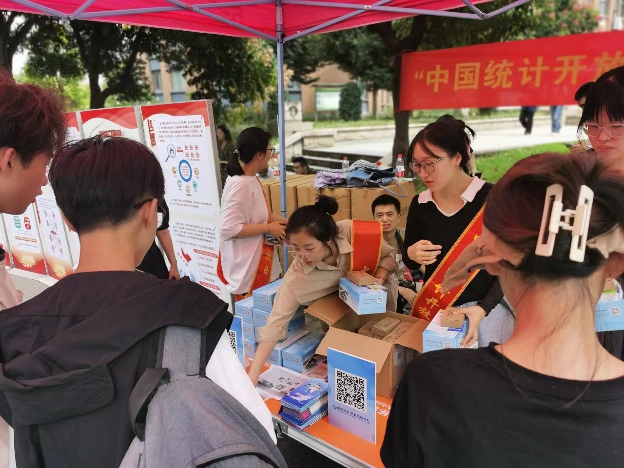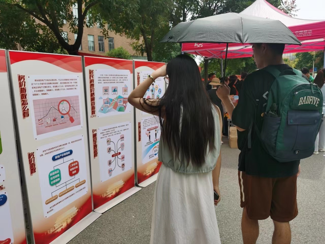 在现场,工作人员对高校学生开展经济普查和法宣传推广,对于大学生们和社会各界普遍关注的居民收入、CPI、房价涨跌等数据怎么出炉的等话题做了专业解答,让现场大学生们尤其是专业学生更好地了解、走近、感受。