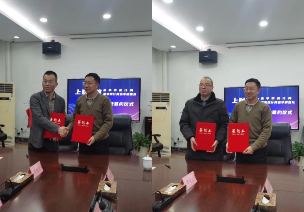 最后,与金华市局、国家局金华调查队分别签订了战略合作框架协议和校外实践教学基地协议并为校外实践教学基地揭牌,还就人才培养、实践基地、横向课题等合作细节进行深入座谈交流。