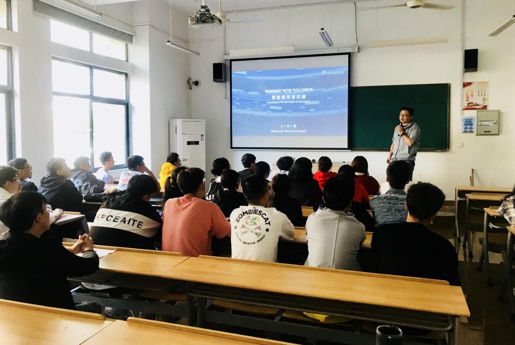 在课堂中,钟总经理从日常生活中的交通数据出发,带领同学们体会数据处理的魅力,以及其背后所能带来的商业信息与价值。从智慧城市路网信息动态采集系统案例出发,讲解了如何利用道路数据分析工具MATISIS,识别高密度路段,为特定道路进行风险评级,合理进行道路优化等等。让同学们印象更加深刻的,是钟总在授课过程中给大家播放的几段关于数据采集和分析的视频。视频中司机的驾驶行为、道路中的各种信号与标识、路人的行动轨迹等都能被精准地捕捉与分析。