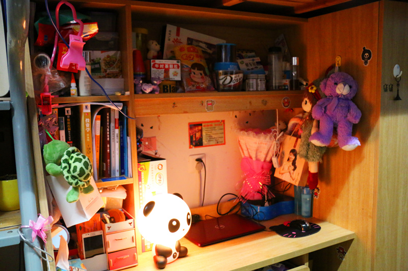 这是一群阳光帅气的男孩,他们跟着程老师的步伐,来到女寝,他们用活泼的性格瞬间点燃了女寝的气氛。我们首先来到10幢13学班的女生宿舍,一进宿舍,男孩们的欢声笑语瞬间停止了,他们被眼前赏心悦目的宿舍“景色”所震惊。碎花的贴纸铺满桌面,宛如朵朵玫瑰盛开在身旁。粉色的小台灯在一旁亮着灯,诉说着只属于这宿舍的秘密,深蓝色印有星型图案的床帘顺势垂下,犹如星辰洒落,宿舍里俨然是另一番世界。可能是头一次有男生来宿舍,女生们都表现的有些羞涩,但在程老师的关怀、慰问下,渐渐活泼了起来,把平时生活的种种细节与我们分享。最后,程老师对女生宿舍十分满意,对女生平时的勤快与积极做出了肯定。