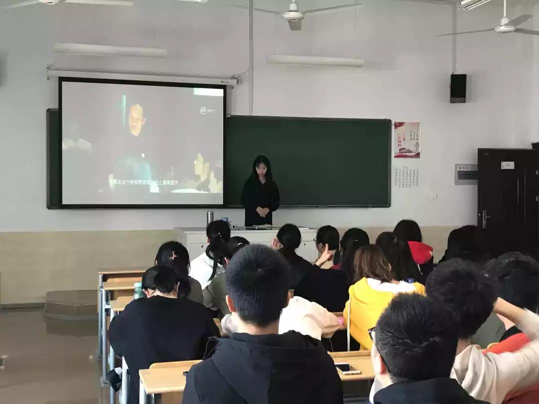 17应用学(金融)一团支部的团支书吕洁以PPT讲解的形式详细阐明了五四运动的历史背景、意义,歌颂了五四运动中的先辈先烈以及许多青年代表人物,并通过观看有关五四主题视频的形式,更为生动直观地展现了五四运动开展的浩大声势。