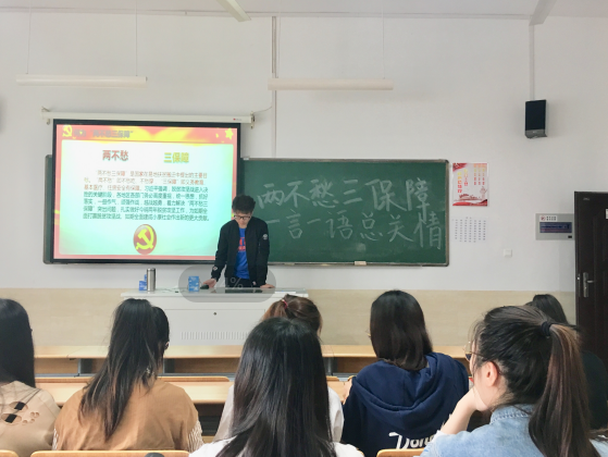 4月25日中午12:30,系学生党支部在教学楼7幢406教室开展了以“两不愁三保障,一言一语总关情”为主题的统学说活动,此次会议的主讲人为系学生党支部预备党员余越。
