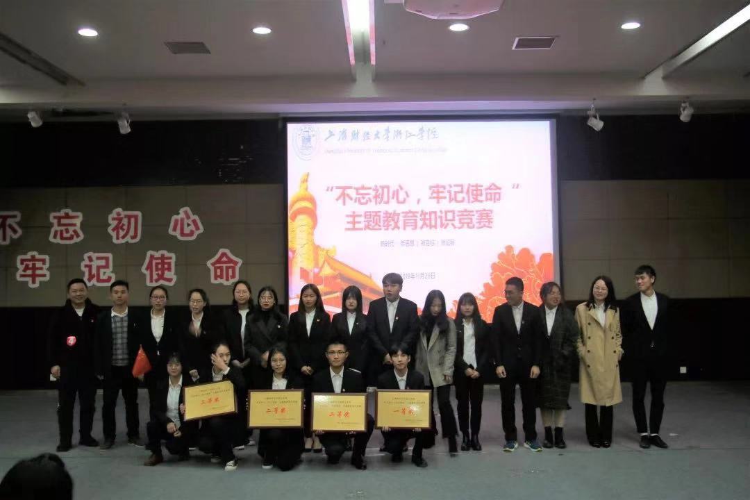 本次知识竞赛内容涵盖习近平新时代中国特色社会主义思想、党的十九大精神、“两书一章”、文明城市创建等主题教育的内容。前来参加“不忘初心 牢记使命”主题教育知识竞赛的共有6支代表队,每个代表队由4人组成。比赛分为必答、抢答及接龙三个答题环节。赛场上,选手们着装统一,精神饱满,斗志昂扬。答题环节,选手们沉着应对,团结协作,对答如流,上演了一场精彩纷呈的脑力与知识的较量。最终经过两个多小时的激烈角逐,工商管理系党总支代表队荣获一等奖,机关党总支代表队和会计系党总支代表队荣获二等奖,金融系党总支代表队、经济与信息管理系党总支代表队和外语系与公共基础部代表队荣获三等奖。