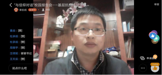 为进一步宣传贯彻党中央、上级部门和学院党委关于疫情防控工作的重要部署,把思想政治教育工作优势转化为强大的战“疫”力量,系党总支邀请虎鹿镇党委书记单凯权同志开展《基层抗疫经验分享》为主题的线上讲座。本次活动由学院党委委员张正亮同志主持,系全体师生参与学习。