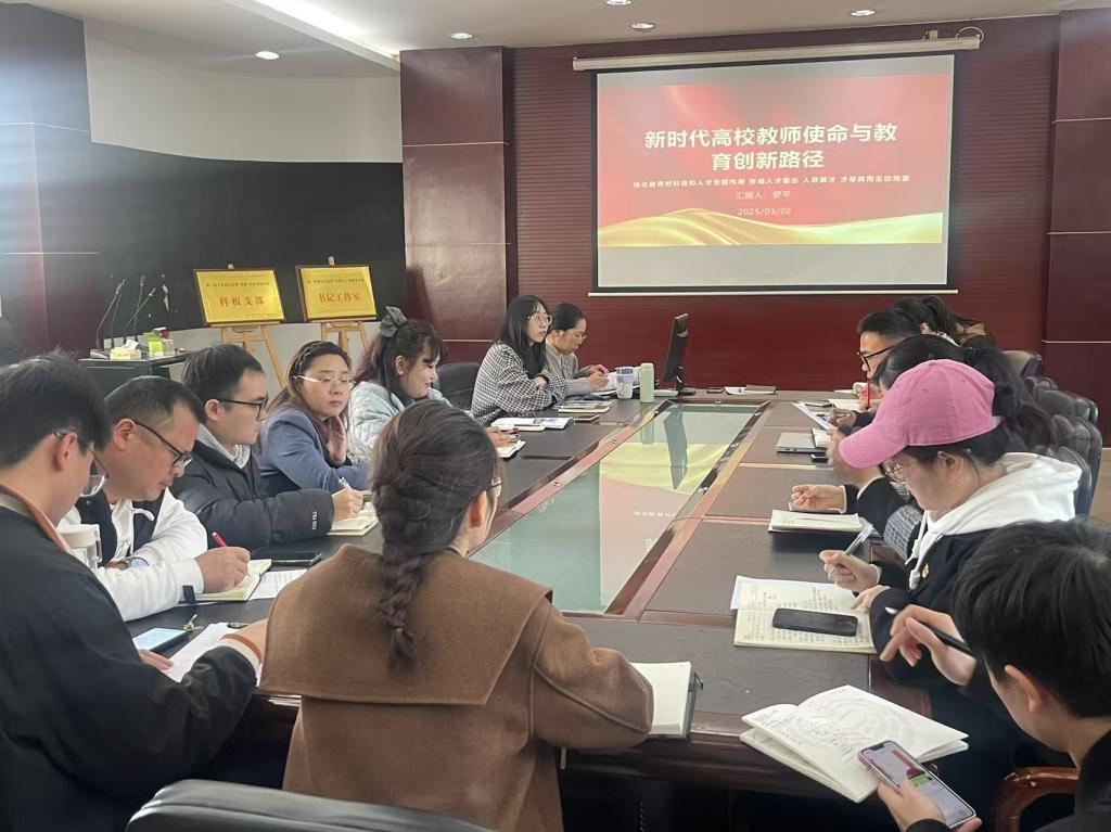 会议第三项:党支部书记罗平同志开展“强化教育对科技和人才的支撑作用,形成人才辈出、人尽其才、才尽其用的生动局面”主题党课。罗平强调我们应该紧扣中心任务履职尽责,科研方向对接国家战略需求,发挥专业优势参与政策,建议探索产学研结合模式,促进成果转化。注重五育并举与思政教育创新,构建课程思政体系,开发跨学科实践课程与数字化教学资源。
